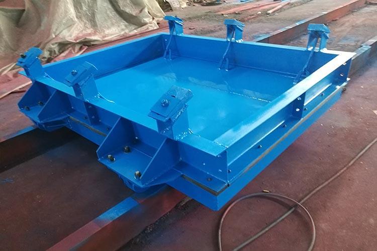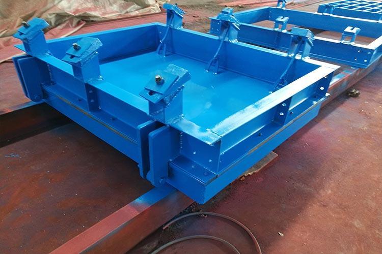 防水防火密閉門(mén)是煤礦井下主要的安全防護(hù)門(mén)之一,用于井下主變電所和主排水泵房通往井底車(chē)場(chǎng)的通道內(nèi),容易關(guān)閉,以防止水的突然浸入,承受壓力可達(dá)98KPa。防水防火密閉門(mén)門(mén)扇為平鋼板、井字筋板、圈梁等組焊而成,門(mén)框?yàn)椴垆?、工字鋼組合框架結(jié)構(gòu),拉緊裝置為楔形滑塊楔緊,安裝時(shí)按我廠(chǎng)原有設(shè)計(jì)將門(mén)組裝好,按照事先預(yù)留好的位置將門(mén)與硐室門(mén)口連成一體。